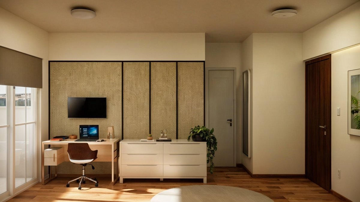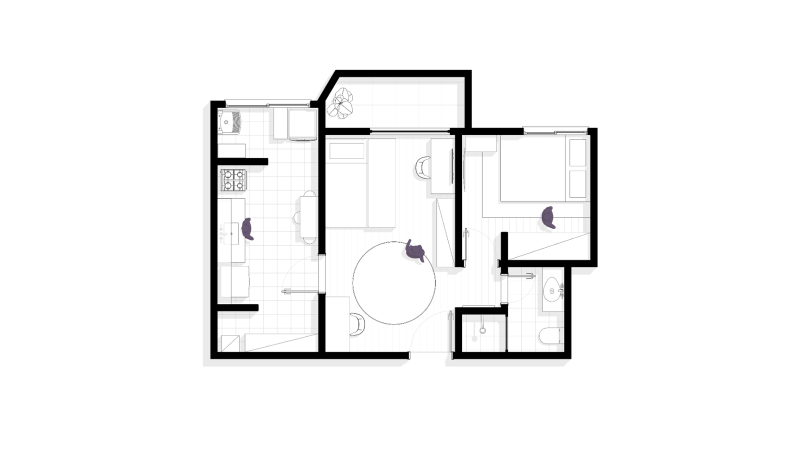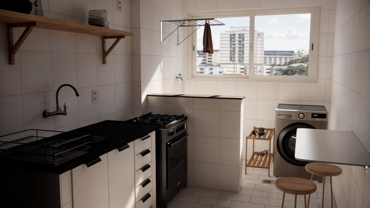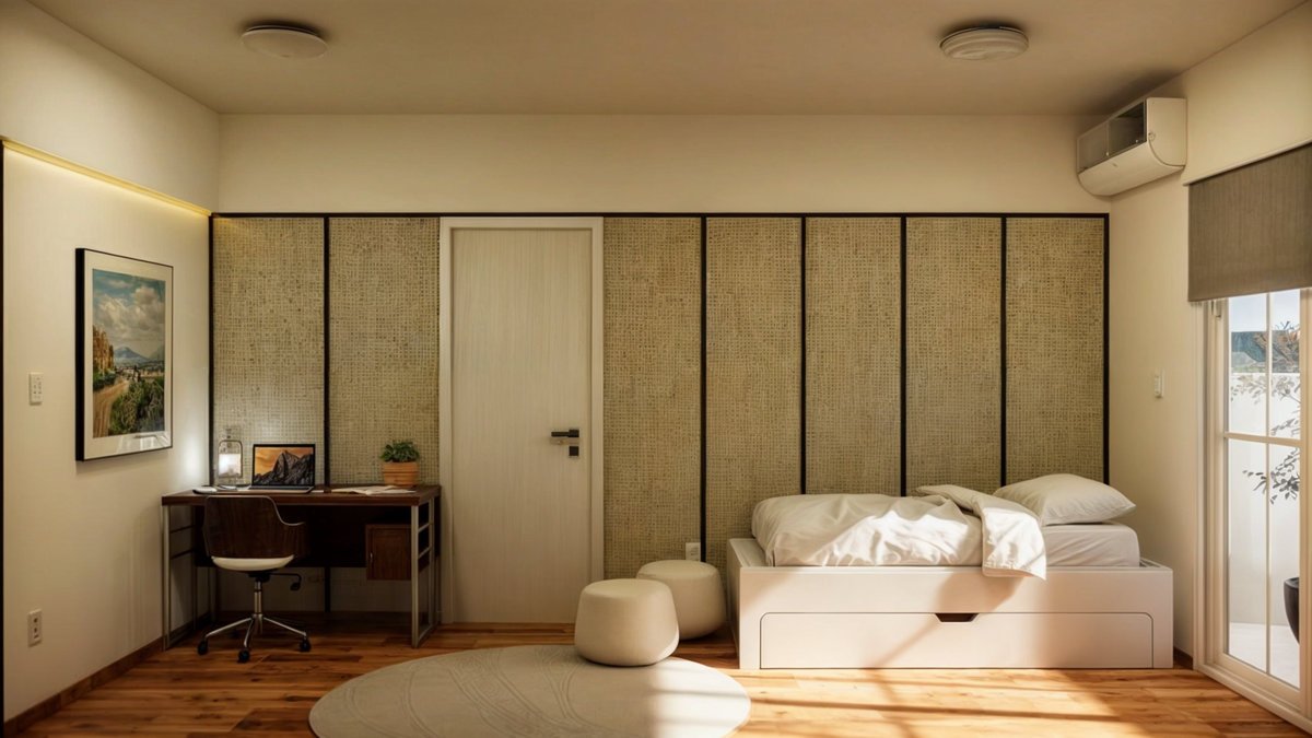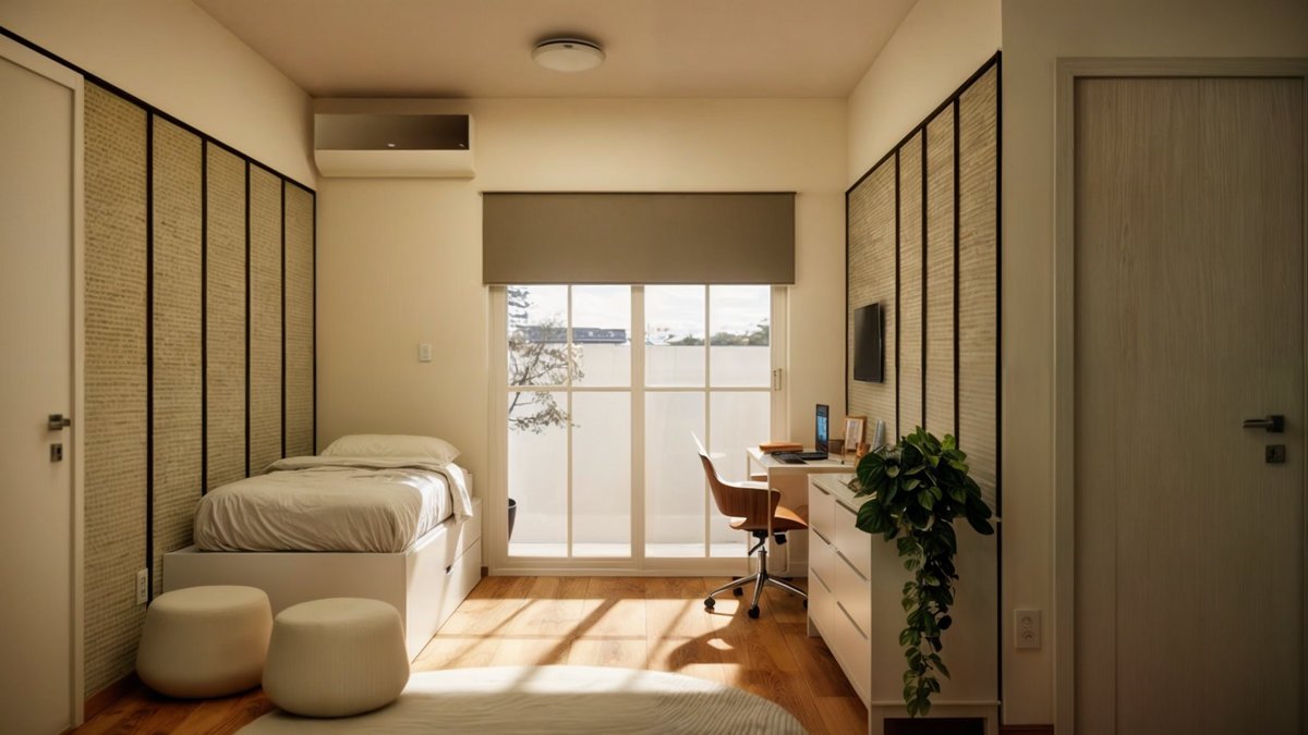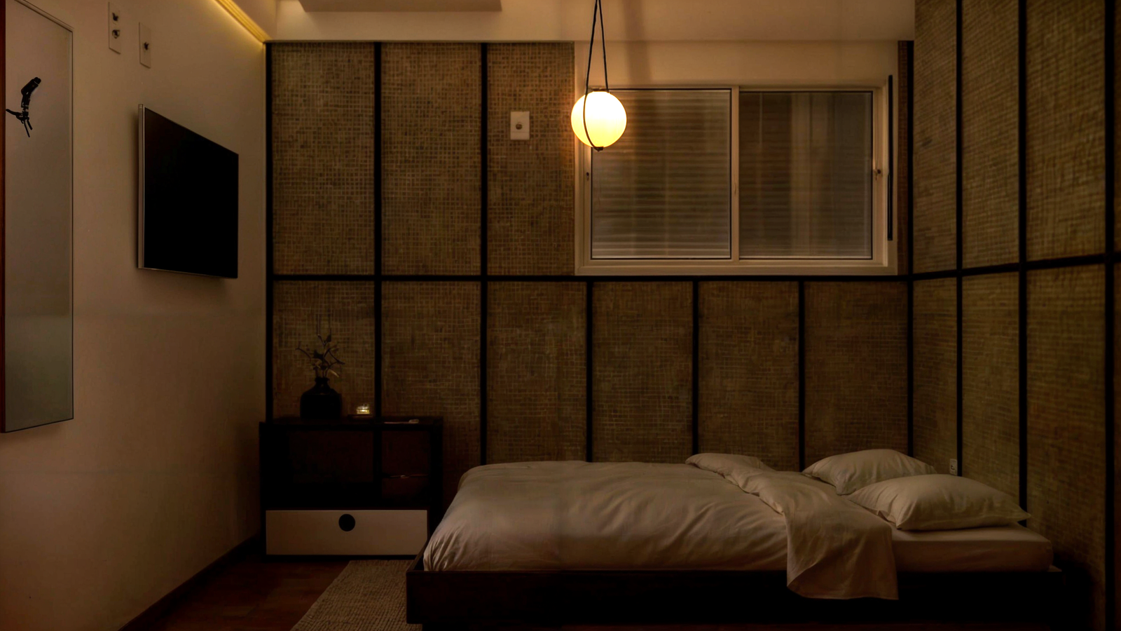 Com uma sala multifuncional, cozinha, quarto de casal e um banheiro, o apartamento Nory, tem como referência o estilo japonês, caracterizado por formas simples e minimalistas, junto, trazemos cores e texturas de materiais naturais, como a madeira, palha, areia.
